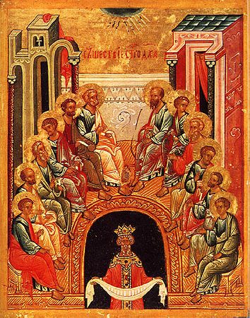 У свято П'ятидесятниці згадується і прославляється Зішестя на апостолів Святого Духа у вигляді вогненних язиків.